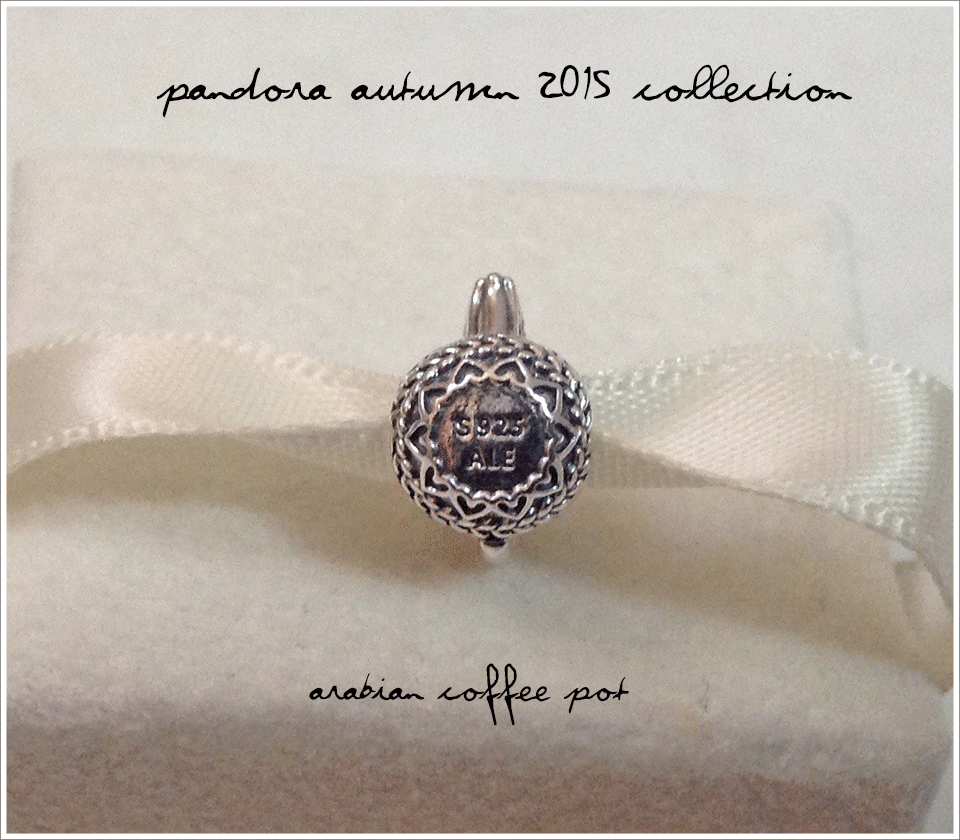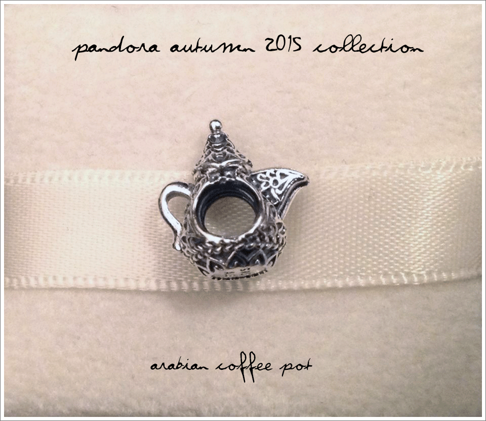 *UPDATED 15/08/15 with live shots!* Today’s quick update offers a sneak peek at a previously unseen coffee pot charm for the Pandora Autumn 2015 collection! I have not yet seen this charm listed for the UK, North America or Australia and it seems likely to me that it is set to be an Asian-exclusive, but I am not 100%. Thanks to information from a commenter, we now know that the UK should be getting this charm as well. :D It’s an absolutely beautiful all-silver design, with some intricate detailing!