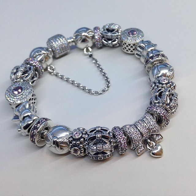 Well, my Cinderella bracelet has the Heart mother of pearl charm(which appears on your picture and I think was the excuse I needed to transform my bracelet!) and the Pearl drop charm (791017PNP), which I was lucky to receive as a birthday present in its closest to cream colour version (I’ve seen it in different shades of pink)! I can’t afford gold pieces but there are little touches of gold: the crown on the pumpkin coach, the word love on the Message of love openwork(791425) and now two of the hearts on the Abundance of love charm! The new white facets I think would be nice on it- it’s the next best option, since the essence pearl bead doesn’t fit moments bracelets!