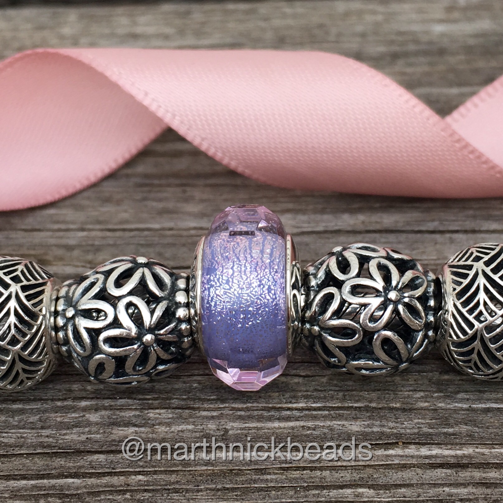 The Flower Garden murano may be delayed, but at least we still have these two beauties! The Shimmer muranos are coming in pink and purple for Spring 2016, and they feature faceted glass inset with a beautiful shimmer effect.