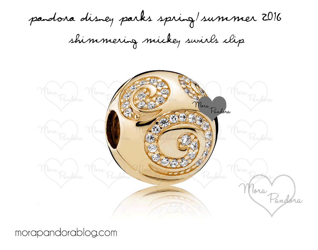 The Disney Parks exclusive 14kt gold Shimmering Mickey Swirls gold clip and two-tone bracelet launched last week at the Pandora Disney Parks in the US! The Mickey Swirls clip is $400 USD, while the bracelet is a little more expensive at $450 USD.