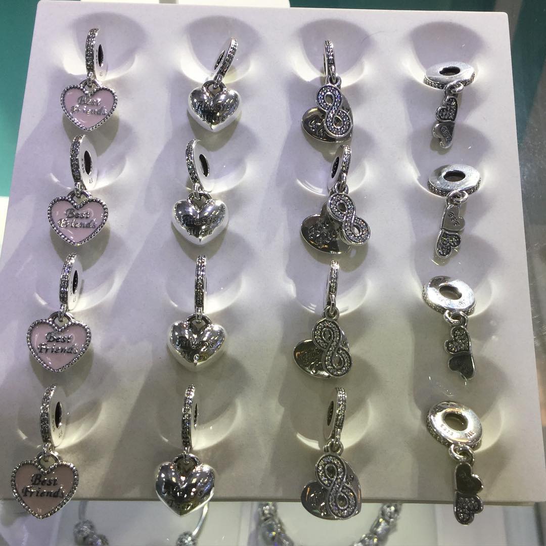 The friendship charms are more delicate, with cute pinks and delicate sparkle.