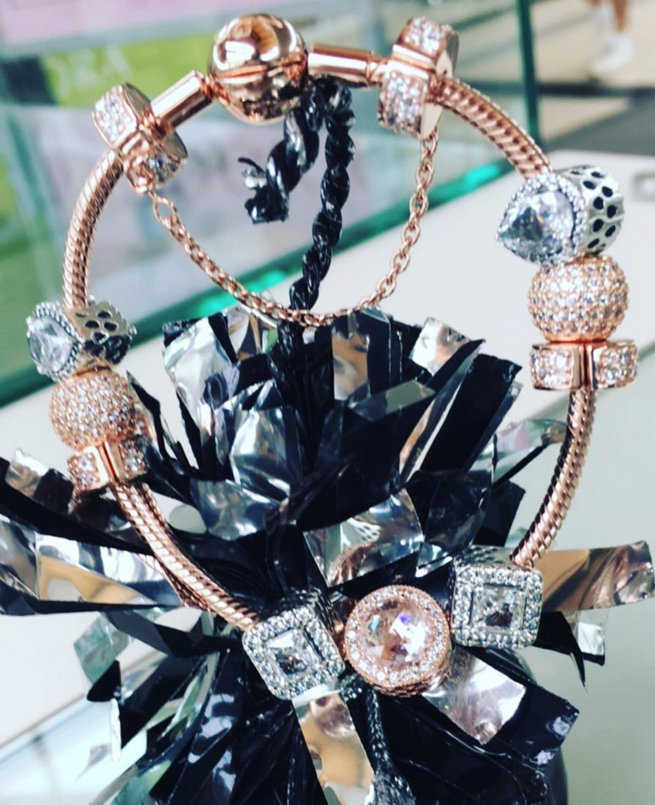 I tried it in the store with a few Rose charms. I think it looks equally good on its own or with a few charms on top. I liked the contrast of the bright, almost white silver with the warm Rose. It is very delicate, and I think it is perhaps a dressier look.
