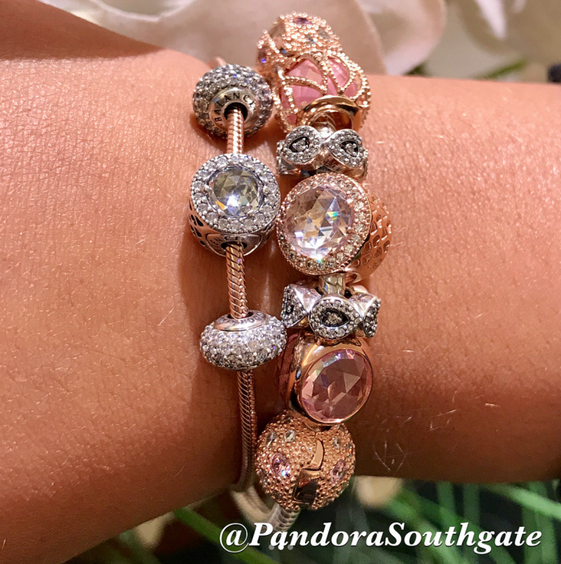 I actually went to the pandora store today. Good news: I loved the new bangle. It’s very white and shiny and contrasted beautifully with the pandora rose pink intertwining radiance. I also bought the teardrop charm, which I love. The bad news: it’s all pave, pave and more pave. I don’t mind the small pave, but the large czs look so fake to me. Nothing in plain silver. I found the murano very pale, but if you want it search through a bunch, because some are much darker and well defined than others. The Pandora rose pieces were disappointing; many of the charms hardly differ from their silver counterparts. I loved the pandora rose cosmic stars clips but they are $100 each and I would need 2. Really could only afford to buy very little with these prices.