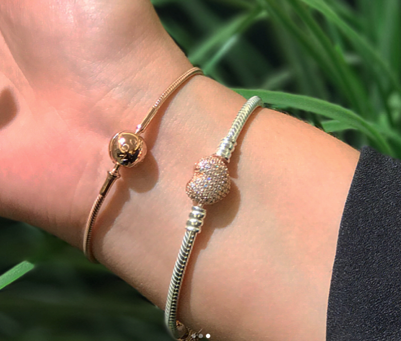 I found the all rose smooth bracelet too much rose. I like the rose clasp silver bracelet with silver and rose charms.