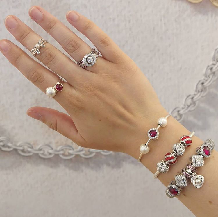 There are three new Essence charms making their debut today – miniature versions of the Moments Radiants Heart design, in festive red, blue and green. Colourful, pretty and pint-sized. ^^ I never got around to posting my Pandora Essence AW17 preview this year, for which I’m sorry – but you can see the new designs in this campaign below!