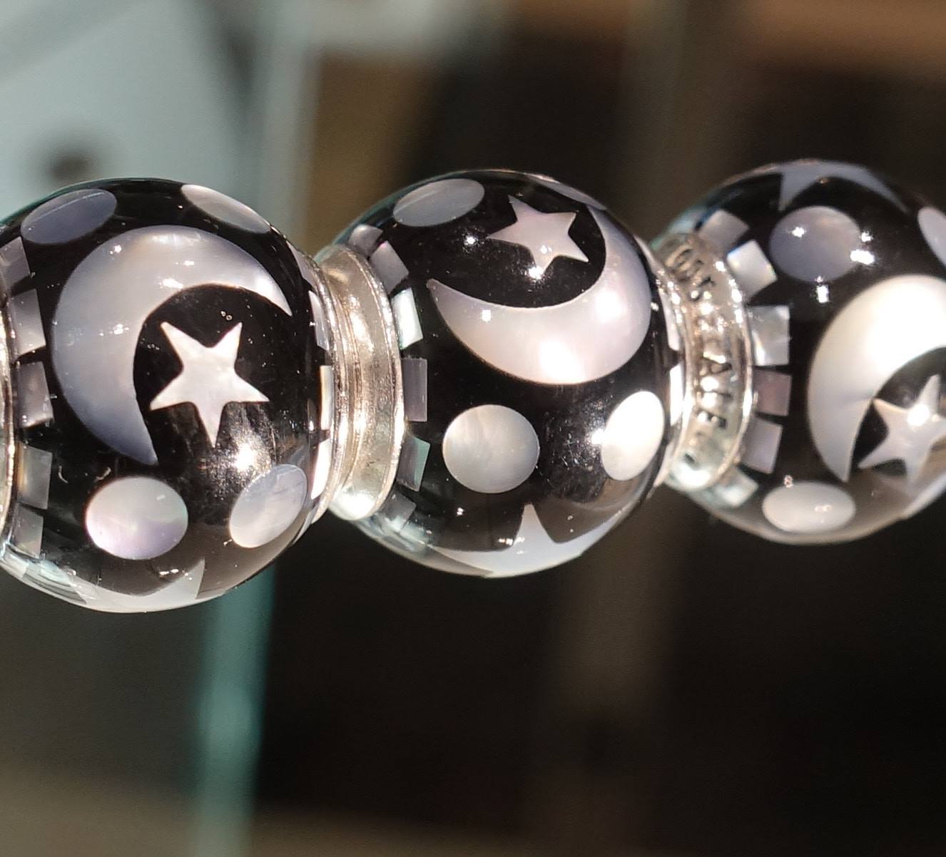 I purchased the polar bear today and while I was in the store I had them look up the celestial mosaic charm in their price guide. The store assistant was surprised to see it listed as acrylic. She thought maybe the mother of pearl inlay might account for the higher price point. I think it is a well executed charm and it really is visually stunning. It gave my Halloween bracelet a nice Hallows Eve feel especially since Pandora did not release new Halloween charms outside the U.S. In the future I will be paying closer attention to the materials used so I can make a more informed decision.
