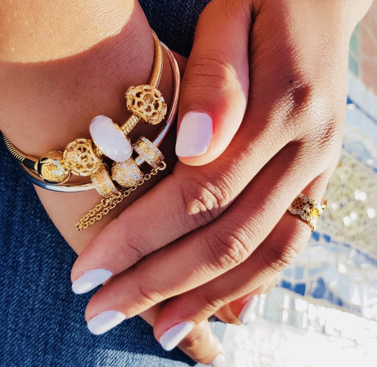 Thank you so much for your review! When I saw Shine I instantly fell in love with the bee motif. I have four pieces so far, the queen bee pendant, the bee petite, the white waves murano, and the golden honey charm. I loved the golden honey charm the minute I saw it but was disappointed to find that the enamel was less amber in person and more yellow. It’s still pretty, but not what I was expecting from stock photos. I love bee jewelry and bee motifs, and I think Shine was a perfect partner for these designs, but I just can’t see where Pandora might take this line. And I doubt I will keep interest past the bee theme. I also prefer silver or white gold, as my skin is too yellow for gold to look good. Most of my Shine charms will go on their own two tone bangle.