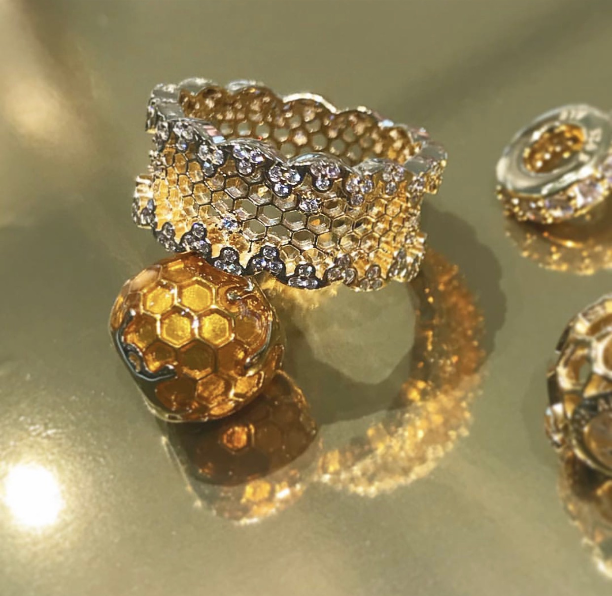The Honeybee ring is another limited edition piece, and another bumble-themed piece that I think works incredibly well. The honeycomb shape of the ring is so pretty!