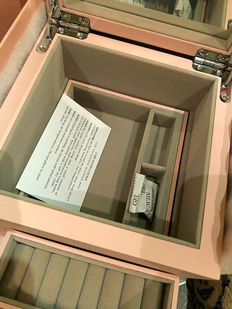 This shot gives you a good idea of its dimensions in relation to a regular charm box. Apparently it’s very heavy, but still of a travel box size. If you have been collecting Pandora for years like me, perhaps it would be best suited to showcasing a small portion of your collection, such as rings and lockets, rather than for everything.